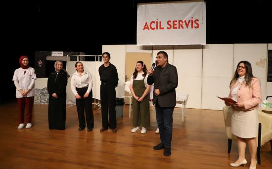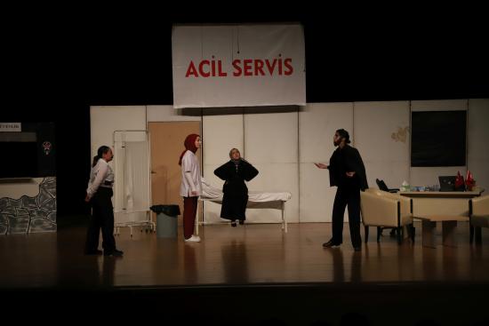 Nevşehir Hacı Bektaş Veli Üniversitesi (NEVÜ) Eğitim Fakültesi Türkçe ve Sosyal Bilimler Eğitimi Bölümü Türkçe Eğitimi Ana Bilim Dalı Türkçe Öğretmenliği Lisans Programı öğrencileri tarafından hazırlanan “Acil Servis” adlı tiyatro oyunu, geniş katılımla izleyici karşısına çıktı.