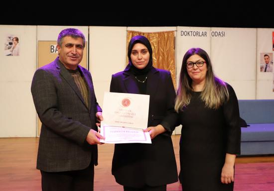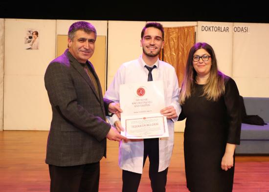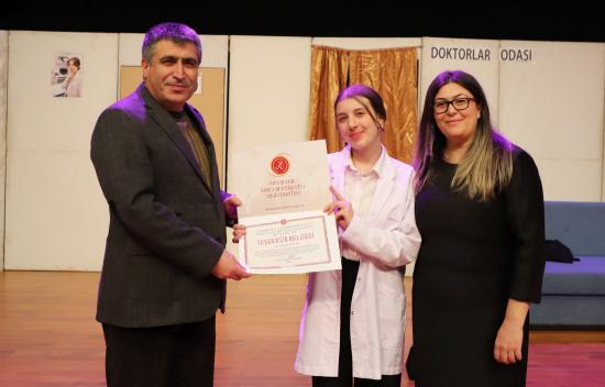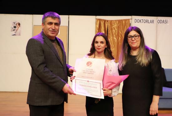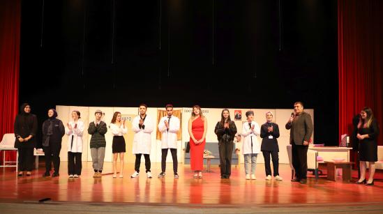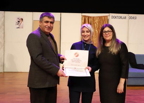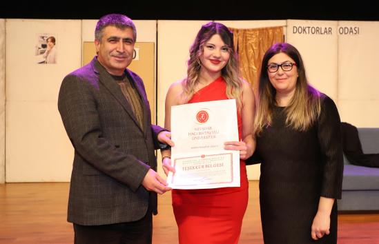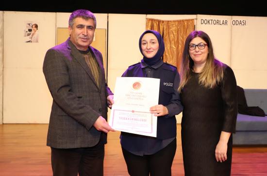 Eğitim Fakültesi öğretim üyesi Doç. Dr. Kübra Şengül’ün yönetmenliğinde hazırlanan oyunda; Semih Salor, Ramazan Aydıncı, Esra Küçük, Sümeyye Koç, Fatma Kara, Zehra Özdemir, Damla Duman, Tuğba Nur Ağa, Sudenaz Aydemir, Hüner Yalçın ve Leyla Coşkun performanslarıyla izleyicilerden tam not aldı.