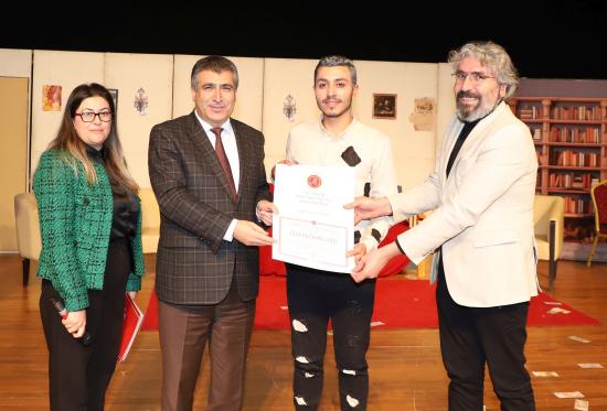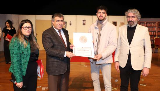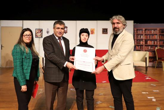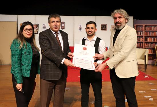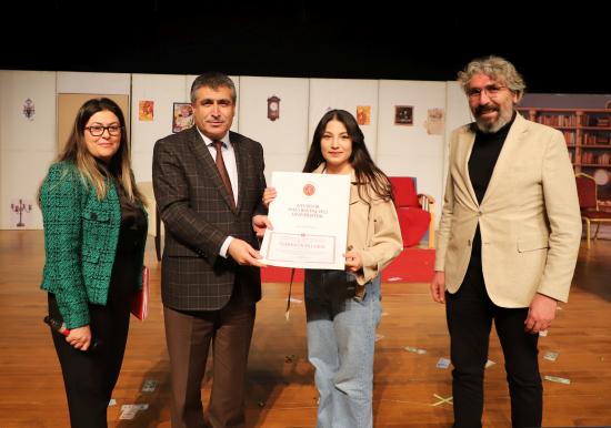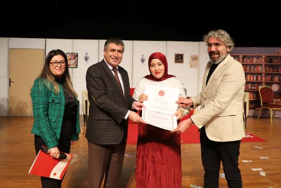 Eğitim Fakültesi öğretim üyesi Doç. Dr. Kübra Şengül’ün yönetmenliğinde hazırlanan oyunda; Muammer Demir, Gamze Temirbuğa, Aleyna Uysal, Deniz Yıldız, Kerim Özgül, Neva Dilara Kişili, Esmanur Ay, İrem Tosun ve Beyza Koçyiğit sergiledikleri performanslarla izleyicilerden büyük beğeni topladı.
