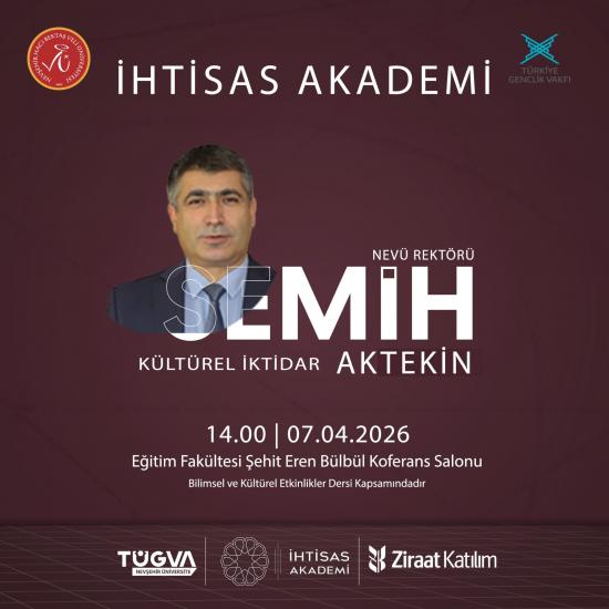 Nevşehir Hacı Bektaş Veli Üniversitesi bünyesinde düzenlenen İhtisas Akademi programı kapsamında, NEVÜ Rektörü Prof. Dr. Semih Aktekin’in katılımıyla gerçekleştirilecek olan konferansımıza tüm öğrencilerimiz davetlidir.